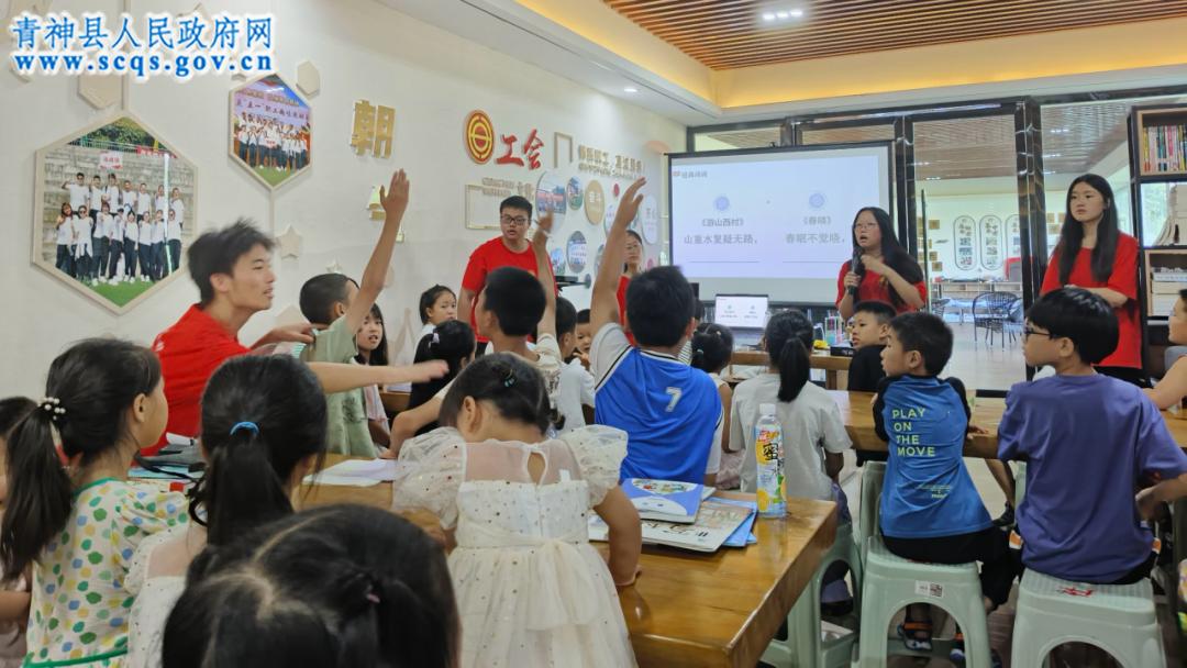 清晨八点,青神县瑞峰镇刘家场社区广场早已热闹起来。蝉鸣声中,孩子们像归巢的小鸟,叽叽喳喳地涌入镇文化站多功能活动室,脸上带着对今天“小课堂”的期待。