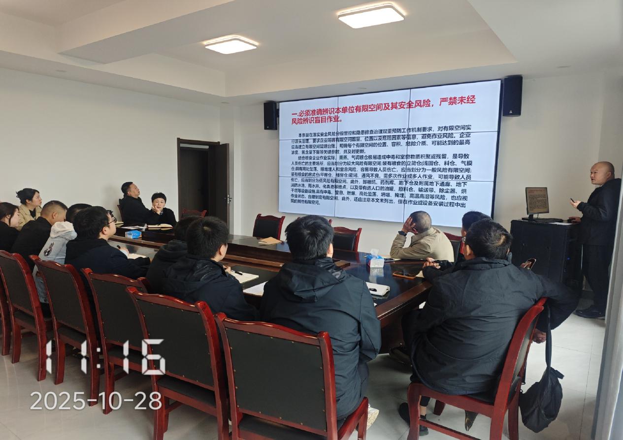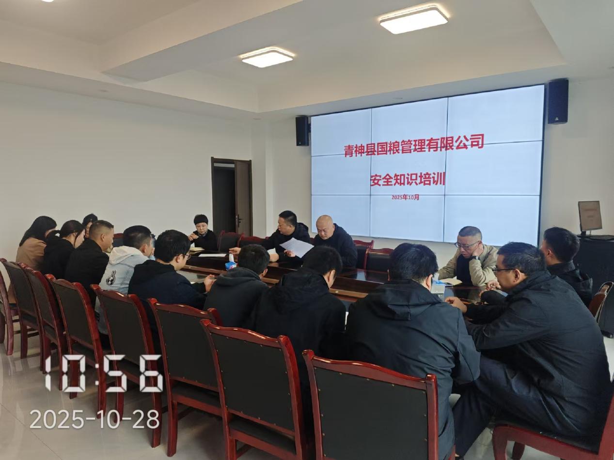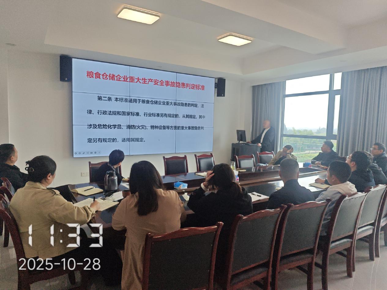有限空间作业是安全生产事故高发领域,是企业安全管理重点部位。为切实增强安全责任意识和风险防范能力,有效防范安全生产事故发生,根据《四川省粮食和物资储备局关于进一步加强粮食行业有限空间和粉尘防爆重大事故隐患专项整治的通知》(川粮局函〔2025〕179号)精神要求,青神县国粮管理有限公司组织全体员工在钟家山粮库4楼会议室开展《粮食存储和谷物磨制企业有限空间安全作业“十必须十严禁”》、《仓储企业安全生产事故隐患判定标准》学习培训。